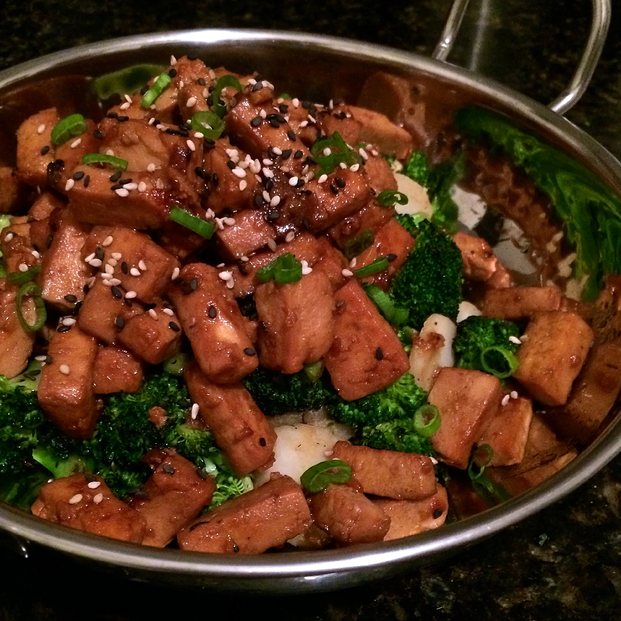 Heat a large skillet over medium heat, add oil - let it get warm add tempeh and sauce to the pan and stir well. Cook over medium heat, stirring frequently, for about 5 minutes or until excess liquid is cooked off.
